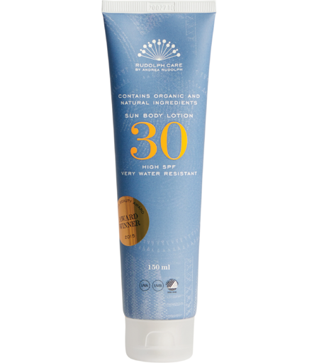 Rudolph Care Sun Body Lotion SPF30 er en lett solkrem med kjemiske filtre og solfaktor 30. Rudolph Care Sun Body Lotion SPF30 beskytter huden mot solen ved hjelp av kjemiske filtre, som trenger inn i huden fremfor å legge seg på overflaten. Dette bidrar til at solkremen ikke føles klissete eller fet, og etterlater heller ingen hvit hinne på huden. Solkremen inneholder blant annet aloe vera og flere andre aktive og naturlige ingredienser som bidrar til å fukte, pleie og beskytte huden. Solkremen har en lett lotion-konsistens som trekker raskt inn i huden uten å føles klissete. Passer til alle hudtyper. Med parfyme. Vannavvisende. Sertifisert med Svanemerket og Vegan Trademark. ...