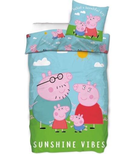 Licens Peppa Gris sengetøy - 150x210 cm - Familien Gris - Sengesett med 2 i 1 design - 100% bomull