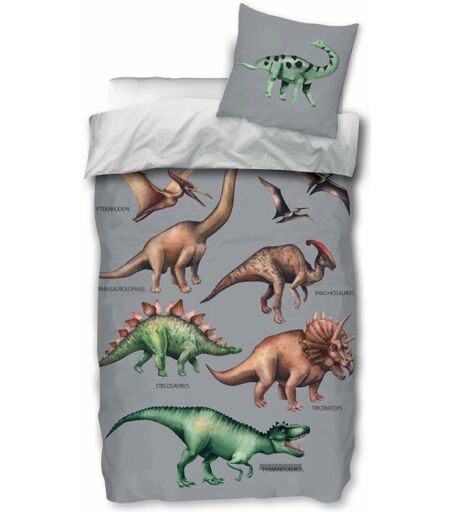 Licens Dinosaur sengetøy - 140x200 cm - Vendbart dino sengesett - Motiv med T-rex, Triceratops og Stegosaurus - 100% bomull - Barnesengetøy