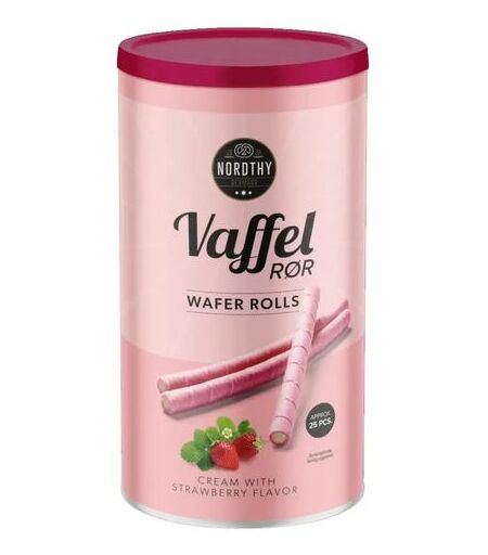 Nordthy Vaffelrør Jordbær 250g Sprø Vaffelkjeks Med Kremfyll