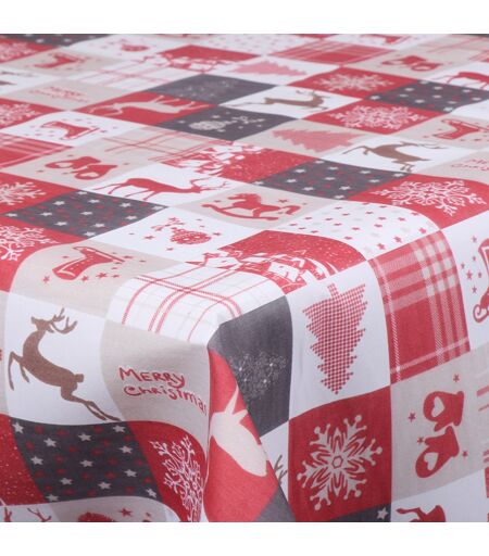 Borg Living Voksduk av tekstil - Rull med 30 meter - Rutete med forskjellige julemotiver - 140 cm bred