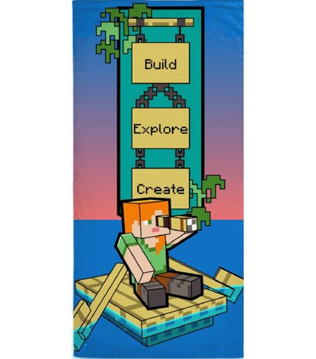 Licens Minecraft håndkle - 70x140 cm - Build Explore Create - 100% bomull - Mykt badehåndkle med Alex