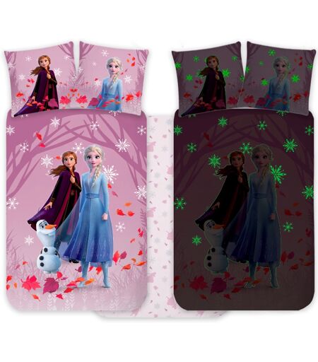 Licens Frost sengetøy - 100 % myk bomull - Vendbart selvlysende juniorsengesett - 100x140 cm - Anna og Elsa sengetøy