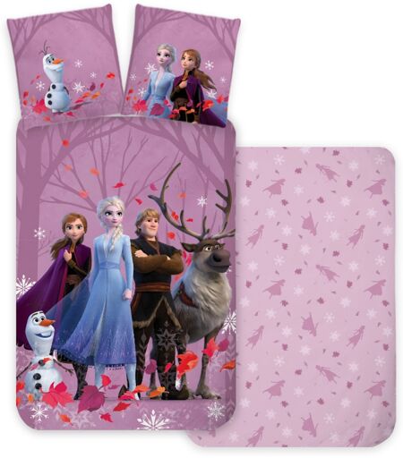 Licens Frost sengetøy - 140x200 cm - Lyserød - Anna, Elsa, Kristoffer, Sven & Olaf - Vendbart Frozen design - 100% myk bomull