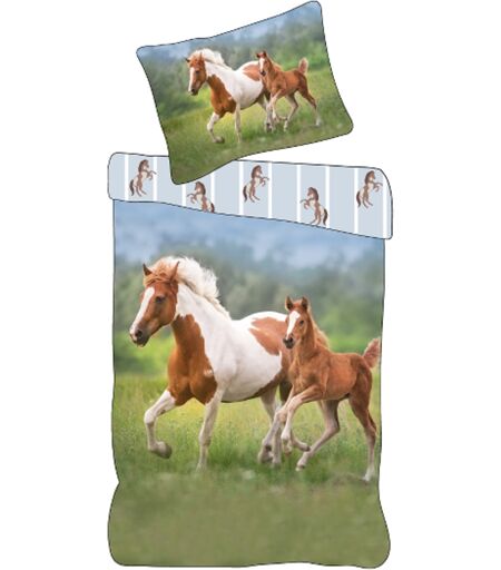 Licens Hestes sengetøy 140x200 cm - Vendbart sengesett med hestemor og føll - 100% mykt bomullssengetøy