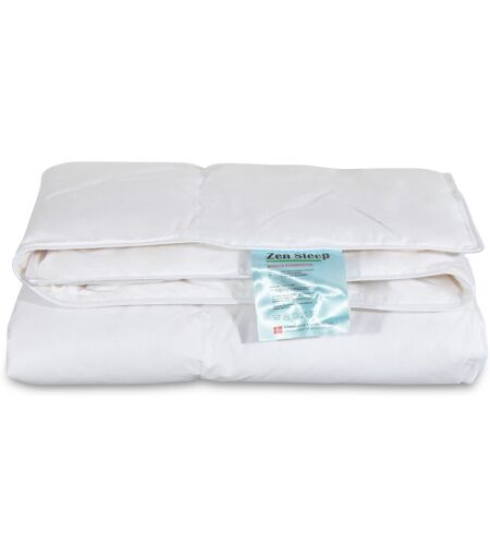 Størrelse: 70x100 cm - Babydyne Type: Sommerdyne - Sval dyne Fyll: 90% Nye hvite europeiske moskusdun og 10% småfjær Merke: Zen Sleep Fyllvekt: 80g Bæreevne: Over 11 (Gammel målemetode) Bæreevne: 725 (Ny målemetode) Bolster: 100% bomullscambric 60\/60 Konstruksjon: 3x5 Gjennomsydd kassettdyne Vask: 60° (Viktig å bruke Enzymfritt vaskemiddel) Tørretromling: Tørketromles med tørkeballer Garanti: 5 år Dynen leveres i en praktisk oppbevaringspose Sertifisering: NOMITE - Fri for husstøvmidd Sertifisering: DOWNAFRESH - 100% rent dun Sertifisering: STANDARD 100 by OEKO-TEX® (BEHO-062282) \/ HKD 18299 TESTEX Sertifisering: Downpass - Høyeste dyreetiske forhold (00123241) Se alle våre puter til barn her Denne sommerdynen er det perfekte valget for babyen i årets varmeste måneder, fordi den gir god komfort og har mange praktiske egenskaper som er viktige for barnas søvn. De rene og myke moskusdunene gjør dynen lett og luftig, noe som sørger for at den ikke føles tung for barnet, samtidig som den tilpasser seg kroppstemperaturen og holder barnet behagelig temperert hele natten. Dynens kassettsydde design sørger også for at dunene fordeles jevnt, slik at det ikke oppstår kalde eller varme soner. Dette skaper en stabil og ensartet sovekomfort, noe som er viktig for små barns søvn. Det myke bolsteret i 100% bomullscambric er pustende, men samtidig så tettvevd at støvmidd ikke kan trenge inn. Dette gjør dynen allergivennlig og perfekt for barn med allergi, eller for barn som er utsatt for det. Zen Sleep sommerdynen har mange sertifiseringer, som gir deg garanti for en trygg og hygienisk kvalitetsdyne.STANDARD 100 by OEKO-TEX®-sertifisert - Fri for skadelige stofferNOMITE-sertifisert - Gjør dynen ideell for allergikere, da den er fri for husstøvmidd.DOWNAFRESH-sertifisert – Garanterer at de innsamlede dunene overholder dyrevelferdslovgivningen. Dunene som brukes i produksjonen, vaskes og rengjøres i samsvar med de strenge kravene til europeiske standarder. Downpass-sertifisert: Høyeste dyreetiske standard Zen Sleep er et dansk merke som har produsert boligtekstiler siden 2012. Produktene deres utstråler kvalitet og komfort. I det store sortimentet finner du bl.a. dyner, puter, overmadrasser og madrassbeskyttere. Basert på råvarer av høy kvalitet, åpner Zen Sleep dørene til en søvn fylt med trygghet og velvære. Zen Sleep sier selv: "Med forbrukeren i sentrum skapes kun de beste produktene". ...