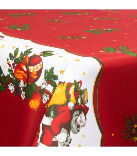 Borg Living Tekstil voksduk med akrylbelegg - 30 meter på rull - Med julemotiv - Santa Claus og misteltein - 140 cm bred tekstilduk