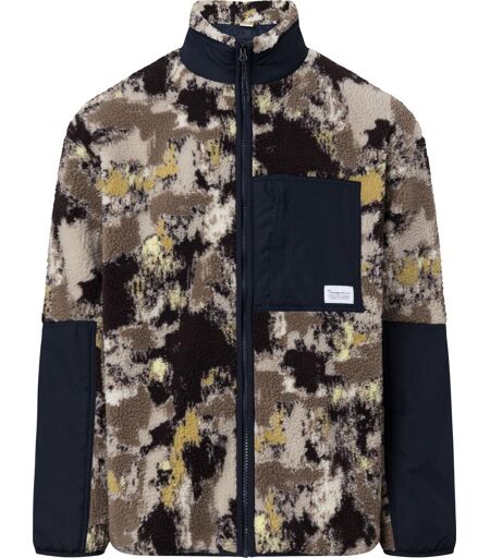 Knowledge Cotton Apparel Men's Oversized Jaquard Sherpa Jacket Brown Aop S