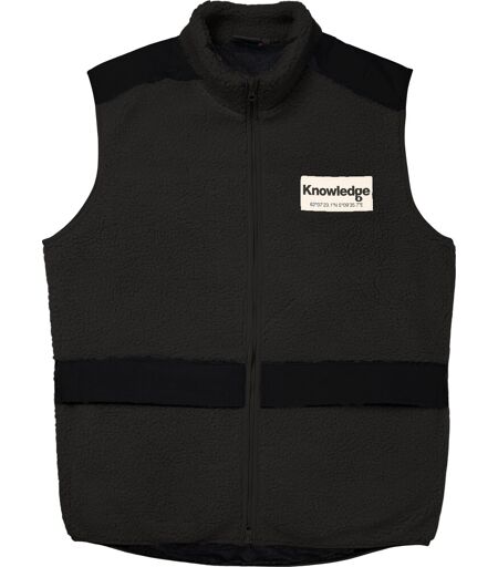 Knowledge Cotton Apparel Men's Teddy Fleece Hood Vest With Rib Stop In Contrast Color Black Jet M