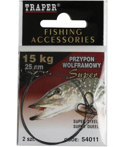 Wiggler Traper gjedde-fortom wolfram. Ny smidig og sterk wolfram-fortom fra Traper. Perfekt til gjeddefiske. Spesifikasjoner: Lengde: 25 cm. Bruddstyrke: 15 kg. ...
