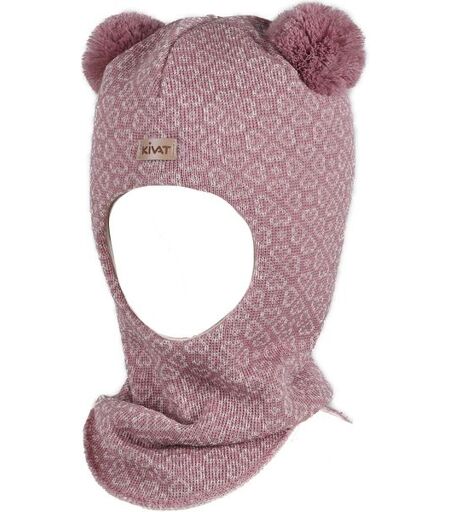 Kivat balaclava med små hjerter og dusker, Creme/Old Rose