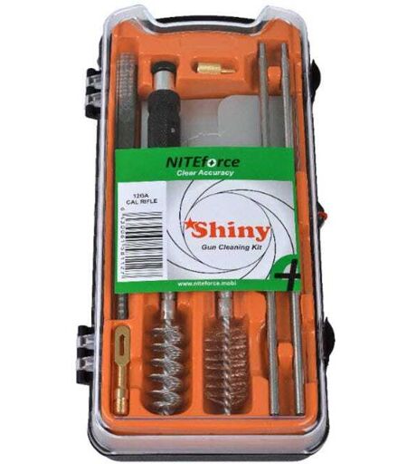 Niteforce Shiny pussesett hagle - kaliber 12. Pussesett for haglevåpen i kaliber 12. Den firedelte pussestangen er produsert i messing for ikke å skade løpet. Pussestangen leveres med et kraftig og grepsvennlig håndtak. Håndtaket er i tillegg roterende, slik at pussen blir mest mulig effektiv. Pussesettet leveres komplett med pussebørste, pusseøyer, bronsebørste, ullsudd og pusselapper. I tillegg til pussesettet bør du ha noen rense- og smørmidler, som et minimum anbefaler vi en solvent til å rense løpet og en våpenolje som både smører bevegelige deler og beskytter mot rust. ...