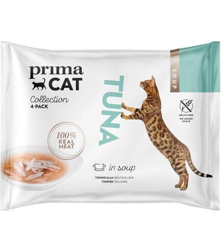 De fleste katter er veldig kresne og vanskelige å mate, derfor er det rikelig med saftig tunfisk- og skalldyrskjøtt i suppefôret som er delt opp i små biter og som katten din vil ha vanskelig for å motstå. Denne suppen er helt uten sukker og korn. ...