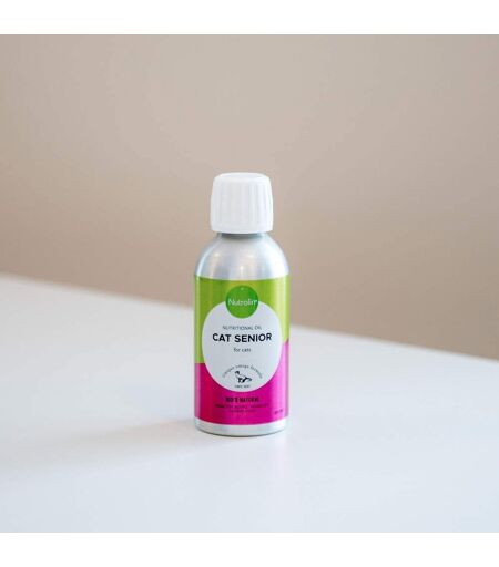 Nutrolin Cat Senior hjelper til med å holde kattens spenst og bevegelighet i god form. Nutrolin Cat Senior hjelper eldre katter over 7 år. Oljen sørger for at katten din får i seg alle de essensielle fettsyrene samt naturlige antioksidanter som trengs for å holde kroppen frisk og fin. Oljen inneholder riktige mengder fettsyrer som hjelper til med å støtte kattende aldrende kropp. Den hjelper også til med å holde kattens bevegelighet og ledd i god form og gir pen glans til matt pels. Smaken på oljen er mild og blandes enkelt ut med kattens mat én gang om dagen. Mange katteeiere lures og tror at katten blir roligere når den blir eldre. Dette kommer vanligvis av at når katten blir eldre, forverres spenst og bevegelighet, i tillegg til at leddene blir stivere. Noen ganger kan det også være snakk om slitasjegikt og smerte i leddene. Med riktig olje gagnes katter over 7 år av omega-3-fettsyrene i fiskeoljen, da disse demper betennelsesreaksjoner – noe som er blitt bevist gjennom utallige studier og undersøkelser. Oljen er basert på fiskeoljer av høy kvalitet som inneholder en unik balanse av omega-3-EPA- og DHA-fettsyrer, 1:2. Den inneholder også naturlig vitamin E, som fungerer som en beroligende antioksidant som beskytter oljens kvalitet samt kroppen til katten. Vitamin E har en viktig funksjon for katten ettersom mangel på vitamin E øker risikoen for pansteatitt (gult fett-sykdom). Katter kan ikke selv produsere DHA og EPA, derfor må de få dette gjennom kosten sin. Resultatet av oljen kan ses allerede etter noen uker. Katten begynner å bevege seg enklere og smidigere i tillegg til at pelsen blir blankere. Åpen flaske oppbevares i kjøleskapet og brukes innen tre måneder. Har en mild og ren smak, 150 ml. Husk at kosttilskudd ikke kan erstatte veterinærbehandling eller et balansert kosthold. Rådfør deg med veterinæren din hvis du er usikker for hva som er best for kjæledyret ditt. ...