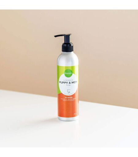 Nutrolin Puppy & Mom hjelper til å forsikre valpens inflammasjonsevne. Anbefales også i god tid før en planlagt paring av hunden. Den absolutt viktigste fettsyren i valpens kost er omega-3-DHA. Denne fine fettsyren er nødvendig for å hjelpe til med å støtte valpens utvikling av både hjerne, øyne og luktsans. Denne omega-3 DHA-oljen bidrar også til å beskytte valpen mot eventuelle hudproblemer i voksen alder. Nutrolin Puppy & Mom kan med fordel gis til tisper fra slutten av graviditeten og til ammingen er over. Den kan også gis til valpene til ca. 1 års alder. Nutrolins oljer er stabile og trygge, noe som er viktig ettersom oksiderende oljer er skadelige for valpens utvikling. VISSTE DU DETTE? En tispe som får valper tidligere, kan ha en lavere DHA, noe som kan bidra til at valpene også får mindre. Da anbefales det ofte at tispen får nettopp Nutrolin Puppy & Mom i god tid før paringen finner sted. Fertilitet + Omega-3-fettsyrer = SANT! Har man en tispe med lave DHA-nivåer, kan dette påvirke tispens kropp. Det kan påvirke muligheten for at tispen blir drektig eller ikke, men også størrelsen på valpekullet. I en undersøkelse gjort med over 17 000 paringer, så man at hvis tispens kost inneholdt høye mengder omega-3-fettsyrer, økte DHA-nivået i vevet. Dermed øker også sjansen automatisk for å bli gravid, antall dødfødte valper reduseres og størrelsen på valpekullet øker (antall fødte valper) – selv ved gjentatte graviditeter (Kelley 2000). Det er derfor lurt å gi tispen Nutrolin Puppy & Mom noen uker før paring. Åpen flaske oppbevares i kjøleskapet og brukes innen fire måneder. Smakfull og enkel for daglig bruk. Husk at kosttilskudd ikke kan erstatte veterinærbehandling eller et balansert kosthold. Rådfør deg med veterinæren din hvis du er usikker for hva som er best for kjæledyret ditt. ...