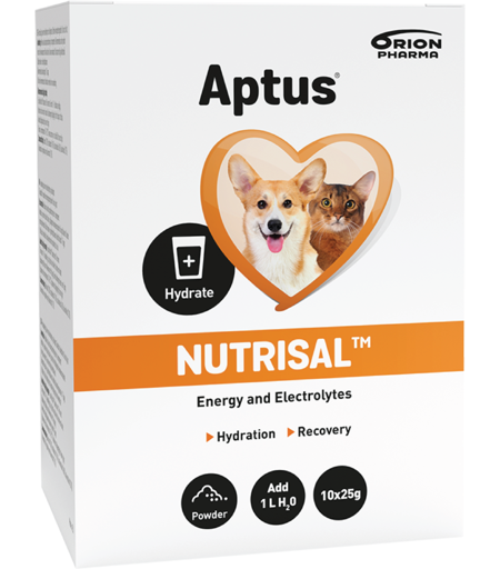 APTUS NUTRISAL drikkepulver er en væskeerstatning som opprettholder væskebalansen hos hunder og katter. APTUS NUTRISAL er et effektivt tilskuddsfôr i pulverform til hund og katt, som inneholder lett fordøyelig sukker og salter. Blandingen tilfører væske, salter og energi når dyret trenger det, for eksempel ved akutt og ukomplisert diaré, høy prestasjon (brukshunder), lengre reiser og på varme dager. Anbefalt brukstid 1-7 dager. Bruksferdig blanding er holdbar i 24 timer. Blandingen har en nøytral smak og er uten farge. Pakken inneholder 10 poser á 25 gram pulver. Det anbefales å rådføre seg med veterinær før produktet tas i bruk. ...