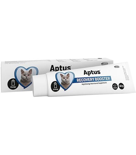 Aptus Recovery Booster Cat 60 g – diettfôrtilskudd for katter Reconvalescent Cat er et konsentrert diettfôrtilskudd for katter i pastaform. Aptus Recovery Booster Cat kan i en kort periode erstatte annet fôr ved manglende appetitt som følge av sykdom eller operasjon. Bruksanvisning Aptus Recovery Booster Cat 60 g Katter som er operert, har en infeksjon eller er under kreftbehandling er svake og får ofte dårlig appetitt. Uansett årsak, har disse kattene behov for lettfordøyelig og konsentrert næring med høyt energiinnhold tilpasset kattens ernæringsbehov. Egenskaper Aptus Recovery Booster Cat 60 g Denne pastaen fra Aptus inneholder essensielle aminosyrer, fettsyrer, vitaminer og energi i form av kyllingfett. Legg merke til at dosen bør bestemmes sammen med veterinær hvis produktet brukes over lengre tid. Kontakt veterinær ved / om : bruk over lengre periode, særlig hvis katten har problemer med nyrer og lever. se pakningsvedlegget for drektige katter og kattunger under 4 måneder. hør med veterinær hvis katten har urinstein. Kontakt også veterinær for råd om fortsatt behandling dersom katten kaster opp eller har diaré. Oppbevares i originalemballasjen i romstemperatur. Åpnet produkt bør brukes innen fire dager. ...