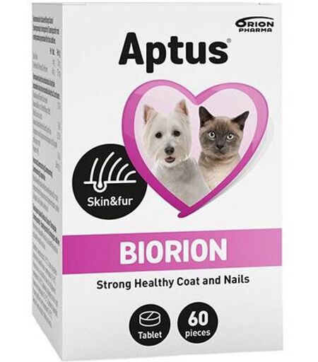 APTUS BIORION TYGGETABLETTER - 60stkEgenskaperAptus Biorion kosttilskudd inneholder biotin og metionin som er viktig for hud, pels og klør. Mangel av biotin kan forårsake for eksempel tørr og livløs pels, pigmentmangel, håravfall, tørr og flassete hud, samt svake og skjøre klør. Behovet for biotin øker under vekst, drektighet og amming. Mangel på metionin kan gi ubalanse i hud og pels.Dosering Hund: 1 tablett per 10 kg, èn gang daglig i 3-5 uker. Deretter 1/2 tablett per 10 kg, èn gang daglig.Katt: 1/2 til 1 tablett daglig. ...