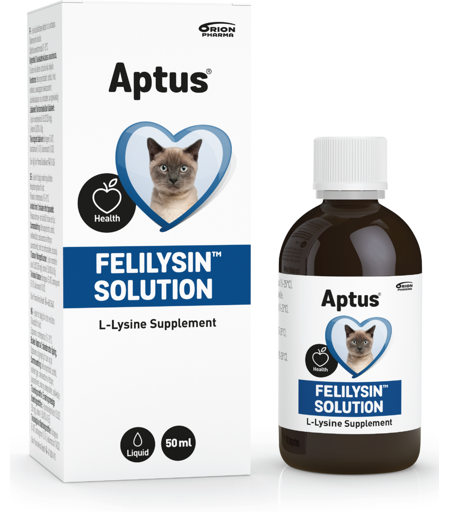 Aptus Felilysin Solution er et tilskuddsfôr med L-Lysin, til katt. Aptus Felilysin Solution inneholder aminosyren lysin. Lysin er en essensiell aminosyre som katten ikke kan produsere selv, derfor bør den tilføres via fôret. Anbefales som daglig tilskudd – eller ved behov. Liten mengde som er lett å gi. Pipette følger med i pakningen. Brukes i løpet av 2 måneder etter åpning. Til katt. ...