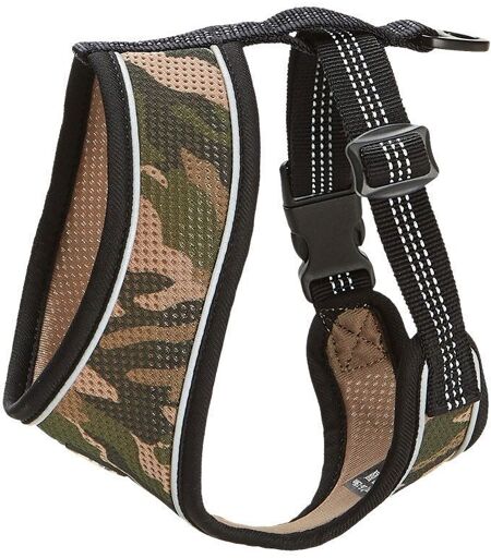 Feel Active Soft Hundesele KamuflasjeDette er en myk og behagelig sele med fint kamuflasjemønster, spesielt tilpasset mindre hunder. Det myke meshstoffet slipper gjennom luft så hunden ikke blir for varm, og følger enkelt hundens bevegelser så den kan røre seg fritt.Feel Active Soft Hundesele Kamuflasje er justerbar rundt brystet, har spenne for enkel av- og påkledning og er dessuten utstyrt med reflekser for bedre synlighet i mørket.Denne selen er først og fremst tiltenkt små hunder – har du en større eller sterkere hund anbefaler vi en kraftigere sele, som for eksempel Feel Active Outdoor Hundesele. ...