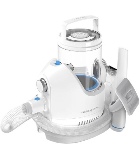 Neakasa P2 Pro Pelsstellsett – Klipp, børst og støvsug hundens pels i ett steg Neakasa P2 Pro er et komplett pelsstellsett for hjemmet, som kombinerer klipping, børsting og oppsuging av løs pels. Med fem ulike verktøy kan du ta vare på kjæledyrets pels – uten at det blir hår overalt etterpå. Hvorfor velge Neakasa P2 Pro? Denne stillegående trimmeren (ca. 52 dB) suger opp løs pels direkte i en 2-liters beholder mens du steller – ideell for deg som vil holde gulvene rene. Passer både hund og katt, spesielt med lang eller tykk pels. Fordeler med Neakasa P2 Pro Pelsstellsett Alt-i-ett-enhet: Klipp, børst og støvsug med ett og samme apparat Lav lyd: Kun 52 dB – godt egnet for sensitive dyr Ingen rot: Løse hår samles rett i beholderen 5 nyttige tilbehør: For klipping, fjerning av underull og generell pelspleie Enkel å rengjøre: Beholderen er lett å tømme Vanlige spørsmål om Neakasa P2 Pro Kan den brukes til katter? Ja – lavt lydnivå og myke børster gjør den svært egnet for katter. Hvordan skiller den seg fra en vanlig trimmer? P2 Pro støvsuger løse hår mens du klipper – ingen støvsuging etterpå! Er den enkel å bruke hjemme? Ja – den leveres med brukerveiledning og alt du trenger. Teknisk informasjon Motoreffekt: 400 W Sugekraft: opptil 10 500 Pa (3 innstillinger) Beholder: 2 liter Lydnivå: ca. 52 dB Ledningslengde: 250 cm Slangelengde: 150 cm Størrelse: 20,8 x 26,9 x 36,5 cm Vekt: ca. 2,5 kg Strømkilde: Vegguttak (EU-plugg) ...