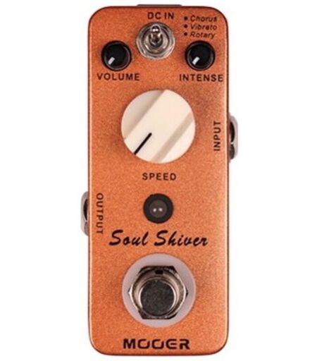 Mooer Soul Shiver Modulation Pedal er en kompakt men kraftig effektpedal som tilbyr kor vibrato og roterende toner for gitarister på alle nivåer. En av de fremtredende funksjonene til denne pedalen er muligheten til å forme lyden med presisjon ved å bruke de fire kontrollene: volum modusbryter intens og hastighet. Til tross for det lille fotavtrykket leverer Mooer Soul Shiver stor ytelse. Med et strømtrekk på bare 128mA vil ikke denne pedalen tynge ned pedalbrettet eller tappe strømforsyningen. I tillegg sikrer dens robuste konstruksjon at den tåler påkjenningene med gigging og transport. Fra noen subtile bevegelser til virvlende psykedeliske lydlandskap Soul Shiver er et utmerket valg for enhver gitarist som ønsker allsidige modulasjonseffekter i en kompakt pakke klar for veien. ...