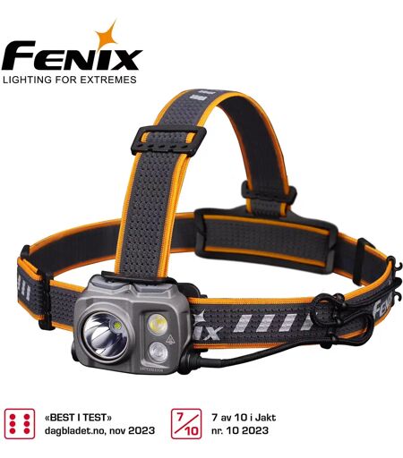 Fenix HP25R V2.0 Best i Test Hodelykt Fenix HP25R V2.0 er en oppladbar hodelykt som gir en ultralang driftstid på 400 timer på lav modus. Drevet av det inkluderte 5000mAh Li-ion-batteriet, kan denne hodelykten levere en maksimal effekt på 1600 lumen. Det er en separat batterikasse plassert bak på hodelykten. Dette unike batteridekselet inkluderer en USB Type-C-ladeport for enkel og rask lading. 60° tiltmekanisme lar deg rette lyset der det trengs, og låsefunksjonen unngår utilsiktet aktivering. Egenskaper: 1600 lumen spotlight og 400 lumen flomlys. En Luminus SST40 hvitt lys LED, en Cree XP-G3 S4 nøytral hvit LED og en Everlight 2835 rødt lys LED; med en levetid på 50 000 timer. Inkludert et Fenix ARB-L21-5000 Li-ion-batteri, kompatibelt med et 18650 Li-ion-batteri (krever batteriholder FALF18). Separat kontrollert dobbel bryter for enkel og rask betjening. Sperrefunksjon unngår utilsiktet aktivering. USB Type-C ladeport for enkel og rask lading. 60° tiltmekanisme retter strålen der det er nødvendig. Laget av kvalitets-PC og aluminium, lett og slitesterk. ...