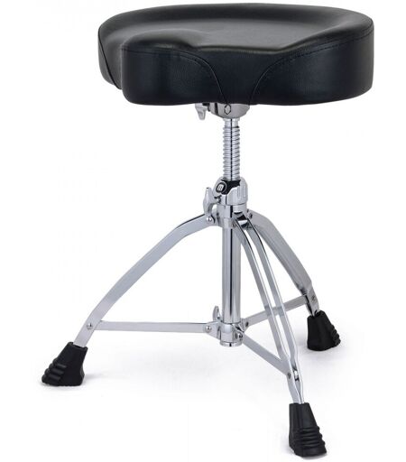 Mapex T855 Saddle Top Drum Throne er en høykvalitets komfortabel trone – perfekt for lengre trommeøkter. Den 17'' x 4'' seteputen gir uovertruffen komfort stabilitet og stabilitet. De skrå benåpningene til det biomekanisk formede setet gir et fritt bevegelsesområde mens den hevede midten og bakkanten bidrar til å Sustain balansen. Med stor høydejusterbarhet har Mapex T855 Saddle Top Drum Throne en gjenget stålspindel som lar deg justere høyden med maksimal pålitelighet og stabilitet. En oppdatert trone med oppgraderte komponenter. Det nye 'kjeveklemme'-festet gir forbedret stabilitet ved å fordele vekttrykket likt. Dette forhindrer at tronen tipper eller rister under forestillinger. Den nye gjengede festemutteren forbedrer stabiliteten til spindelakselen og inkluderer en låsepakning for å forhindre at vingemutteren løsner under forestillinger. For ytterligere forbedringer av stabilitet er denne tronen utstyrt med overdimensjonerte PVC-føtter – perfekt for enhver spilleflate. ...