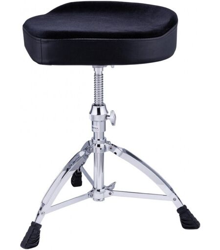 Mapex T685 Saddle Top Cloth Drum Throne er et must for trommeslagere som ønsker overlegen komfort og stabilitet. Med sin større sitteflate gir trommestolen bedre plass og økt komfort for lange timer med trommespill. Si farvel til ubehag og hei til endeløse jam-økter. Den optimaliserte plasseringen av lårene på trommestolen forandrer alt. Nå er det slutt på å skli eller miste rytmen midt i en opptreden. Tronen har også 25 graders fall noe som ytterligere forhindrer uønsket glidning slik at du kan fokusere på rytmen uten å bli distrahert. Denne trommestolen prioriterer ikke bare komfort den har også en elegant design. Det store setet i svart stoff er ikke bare visuelt tiltalende men også ergonomisk utformet for å støtte kroppen din under intense trommeøkter. Trommestolen er montert på en spindelfot som gir holdbarhet og stabilitet slik at du kan spille med selvtillit. ...