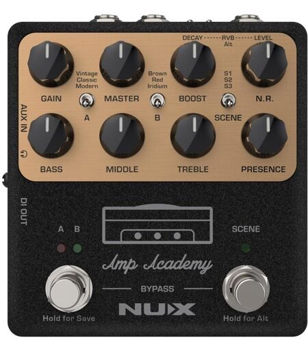 NUX Amp Academy Pedal er laget for gitarister som trenger autentiske forsterkerlyder uten å dra med seg tungt utstyr. Den kompakte enheten inneholder seks forsterkermodeller alle basert på ikoniske toner fra American clean til britisk high-gain. Du får innebygd IR-kabinettsimulering med støtte for tilpassede IR-er fra tredjeparter pluss en kraftig programvareredigerer for dyptgående tweaking. De doble utgangsstiene og den omkoblingsbare rutingen gjør den klar for både konsert og studio. Bare plugg inn og spill ingen mikrofonforsterker er nødvendig. Sceneskift gir deg øyeblikkelig tilgang til full riggendring mens innebygde effekter som boost mod delay og reverb dekker alt det viktigste. Amp Academy er ideell for hjemme-tracking live -sett med IEM-er eller økter med hodetelefoner sent på kvelden og tilpasser seg enkelt til oppsettet ditt. ...