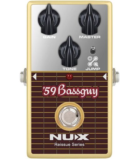 NUX Bassguy Preamp Overdrive Pedal er ideell for bassister som jakter på vintage tone med en moderne vri. Denne pedalen er designet for å etterligne den klassiske Fender 1959 Bassman-forsterkeren og bruker en helt analog krets for å levere varm responsiv drive. Med treveis Jump-bryteren kan du velge mellom Normal Bright eller en blandet kanal slik at du kan skreddersy lyden til ulike konserter eller sjangre. Enkle kontroller for Gain Master og Tone gjør det enkelt å stille inn punchy low-end grit eller smooth overdrive. Bassguy er egnet for blues rock og retroinspirerte toner og den er intuitiv og bevarer kjernelyden din takket være den ekte bypass-designen. ...