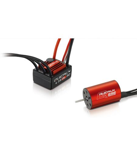 this combo contains:quicrun-16bl30 esc+quicrun-2435-4500kv motor motor specifications: kv:4500 shaft diamater (mm):2.30 shaft length (mm): 10 rotor pole: 2 suitable car:1/18 & 1/16 on-road/off-road/buggy/truggy/monster lipo cells:2-3s resist:0.0498? no-load current(amp):1.5 max. output power(w):150 current at the point of m.o.p (amp):33 esc feature: waterproof and dustproof for all-weather races. color: red package total weight: 412.00 grams (incl. packaging) package size: 17.00 x 21.00 x 8.00cm factory description: hobbywing hobbywing quicrun brushless system: wp-16bl30 + 2435-4500kv combo for 1/16 & 1/18 rc red manufactured by hobbywing manufacturer number: hw/quicrun-16bl30+2435sl ...
