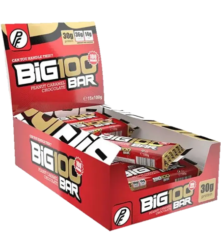 Big 100 Protein Bar er smekkfull av god smak med hele 30 gram protein og masse energi. En bestselger! Med Big 100 Protein Bar satte Proteinfabrikken standarden for hvordan en proteinbar skal se ut og hvordan den skal smake. En stor bar med masse næring, fullpakket med protein og med veldig god smak stopper sulten. ...