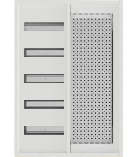 Fordelingsskap innfelt, ekstra dypt. 2 dørs side by side. 5x12 mod. Godkjent for 2x63A, 3/4x63A. Utsparring for 3 stikk, plass til 14x2 stk Keystone. Vi er etter Forskrift om elektrisk utstyr § 21 pliktig til å informere våre forbrukere at installasjonsmateriell ment for å kunne inngå i et fast elektrisk anlegg kan kun installeres av en registrert installasjonsvirksomhet. Unntatt er elektrisk materiell som utelukkende er ment for bruk i faste teleinstallasjoner, og elektrisk materiell som forbruker selv lovlig kan installere. ...