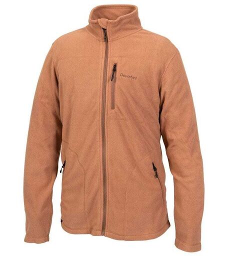 Dovrefjell Skauen fleecejakke til herre. Myk og behagelig jakke til tur og fritid som passer like godt som mellomlag som ytterlag om været tillater det. Jakken har en napoleonslomme og to stikklommer, alle med glidelås. Den har høy hals og løs passform uten elastikk i livet. Farge: Mocha. Materialer: 100% polyester, 190 gr/m². ...