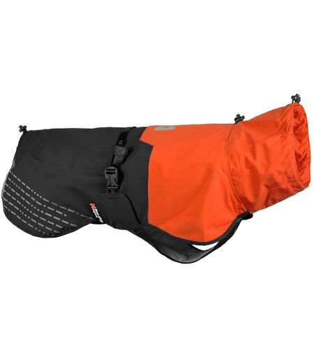 Non-Stop Fjord Regnjakke Svart/Oransje – Vind og vanntett regndekken for hunder Fjord holder hunden din både ren og tørr på turer i regnvær. Det solide polyesterskallet beskytter mot både vann og vind, med 15 000 mm vannsøyle og en membran som puster og bidrar til ventilasjon som minsker kondensen fra hundens kroppsvarme. Regndekkenet har justerbar passform, og du kan enkelt tilpasse regndekkenet etter hundens unike mål. Det har en justerbar hette som beskytter hodet og ørene til hunden mot regn, en praktisk åpning til kobbelet på ryggen og benbånd bak som holder dekkenet på plass. Dekkenet er enkelt å ta av og på ved hjelp av knepping rundt magen. Bakerst sitter detrefleksdetaljer, noe som gjør hunden din ekstra på turer i mørket. Oversikt Non-Stop Fjord Regnjakke Svart/Oransje Vind- og vanntett, 15 000 mm vannsøyle Åpning til kobbelet på ryggen Benbånd bak Refleksdetaljer ...