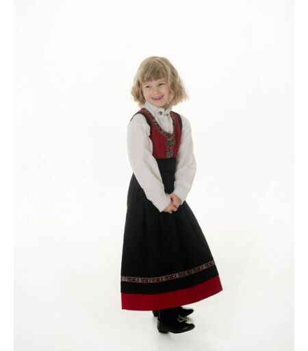 Salto nyeste festdrakt / bunad til jenteInkludert: festdrakt bluse, uten veske.Farger: Sort og rødSkjorte: 100% BomullVaskes lett på 30 grader. ...