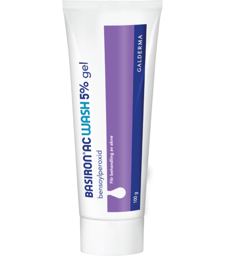 Basiron AC Wash gel er et reseptfritt legemiddel som virker mot kviser (Acne vulgaris). Basiron inneholder et virkestoff (benzoylperoksid) som reduserer mengden av kvisebakterien Propionibacterium acnes. Basiron WASH GEL er en behandling som passer til bruk i dusjen ved større kviseområder, hvis du f.eks. har problemer med kviser på ryggen. Ansiktet kan selvfølgelig behandles samtidig. Det fører til at talgpropper i huden løser seg opp. Vaskegeleen påføres angrepne hudområder og vaskes av etter 1-5 minutter. Ved første behandling kan huden kjennes varm. Vær oppmerksom på at geleen kan bleke hår, tekstiler og annet materiale. Basiron skal ikke brukes sammen med legemidler som fremmer avskalling, irritasjon eller uttørkning av huden. Virkestoffet i Basiron, benzoylperoksid, motvirker effekten av tretinion (vitamin A-syre) og bør ikke brukes samtidig med legemidler som inneholder dette. ...