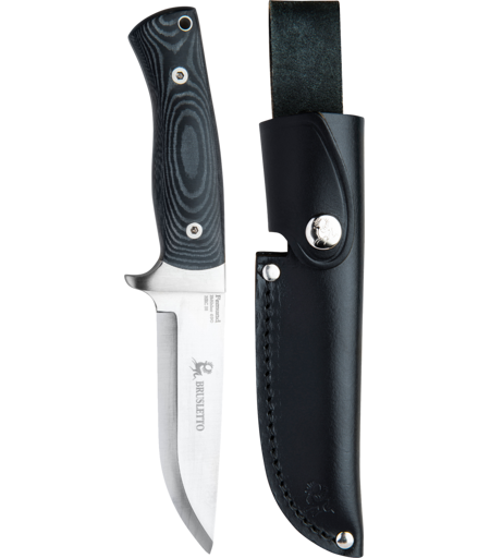 Femund fra Busletto er en kraftig fulltangekniv med rett slipe og fingervern. Det er en jaktkniv med et blad med en liten drop-point profil. Femund er velbalansert og ligger svært godt i hånden ved bruk. Dette er den perfekte kniven for den som vil ha en solid kniv til både jakt og fiske, og det er en meget fin gave til noen som setter pris på en vakker og flott kniv. Brusletto Femund er oppkalt etter en særpreget nasjonalpark i Norge. Total lengde kniv: 23,5cm Lengde blad: 11,5cm Knivstål: Bøhler 690 Materiale skaft: Micarta Slire: Sort okselær med edgeblock ...