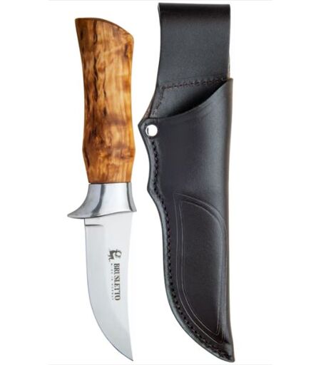 Falken fra Brusletto er en svært god jaktkniv med hulslipt blad. Det buede knivbladet med oppsving er tilpasset til jakt, men fungerer også til annet bruk. Den har et knivblad på 8,7cm, og det hulslipte bladet gjør kniven lett å sette opp igjen dersom den blir sløv. Holk i massiv støpt aluminium og farget okselærslire med sikkerhetsinnlegg. Bladet er av rustfritt knivstål og skaftet er av oljet masurbjørk. Total lengde kniv: 19,5cm Lengde blad: 8,7cm Knivstål: 440C Materiale skaft: Oljet masurbjørk Slire: Brunt okselær sikkerhetsinnlegg ...