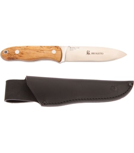 Fjellet kaller! Turkniv fra Brusletto. Perfekt å ha med seg på tur. Brusletto Rondane i ny oppdatert versjon. Skafteplatene er smalnet ned og mer profilerte enn tidligere og kniven ligger derfor enda bedre i hånden. Brusletto Rondane er en fulltange turkniv og er en kombinasjon av tradisjonell og moderne knivteknologi. Turkniven er egenartet med sitt spydformede blad og serratering på ryggen av bladet. Dette er en kniv for den som vil ha en solid turkniv med konslipt blad som kan brukes til det meste. Brusletto Rondane er velbalansert og ligger svært godt i hånden ved bruk. Dette er en meget fin gave til noen som setter pris på en vakker og flott kniv som er ment for å brukes. Brusletto Rondane er oppkalt etter Norges første nasjonalpark. Total lengde kniv: 23,6 cm Lengde blad: 11,8 cm Knivstål: Böhler 690 Skaftmateriale: Oljet masurbjørk Slire: Sort okselær med edgeblock Vekt: 200g ...