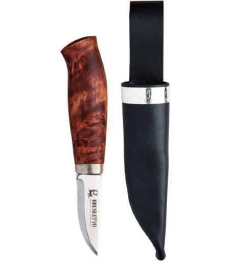 Brulsetto Rypa kniv - en mindre allround kniv. Liten kniv som er en klassiker blant småviltjegere. Til tross for knivens størrelse, passer den de fleste hender - små som store. Spesifikasjoner: Total knivlengde: 17,2 cm. Bladlengde: 6,5 cm. Knivstål: rustfritt tyskt 1.4116N knivstål. Skaftmateriale: farget og oljet flammebjørk. Vekt: 200 gram. Slire produsert av sort okselær med sikkerhetsinnlegg. ...