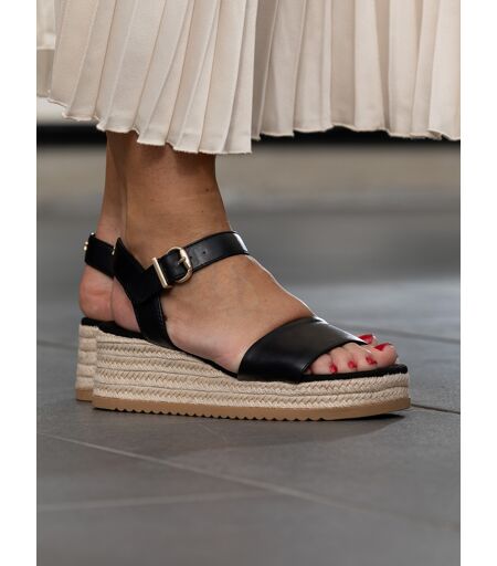 Lili Wedge er en platform sandal med kilehæl dekket i flettet jute og justerbar ankelstropp med gullspenne. Overdel i glatt imitert skinn med myk mikrofiberpolstring på undersiden for ekstra komfort. Logo emblem på bakside. ...