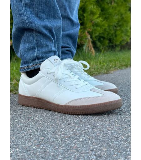 Oppgrader stilen din med Jean Paul Sancy, nå i hvit imitert skinn. Denne modellen kombinerer moderne detaljer med klassisk design, og gir deg en stilfull sko med en frisk og ren farge. De beige detaljene på hælkappen og foran på skoen beskytter tuppen samtidig som de tilfører et sofistikert preg. Den brune sålen gir et stilfullt kontrastuttrykk og legger til ekstra komfort og støtte. Som en del av den klassiske Sancy-serien, kommer denne modellen med snøring for en justerbar passform og en tidløs design som kan brukes til både hverdags og mer formelle anledninger. Gi garderoben din et friskt pust med Jean Paul Sancy i hvit - en sko som kombinerer stil, komfort og beskyttelse. ...