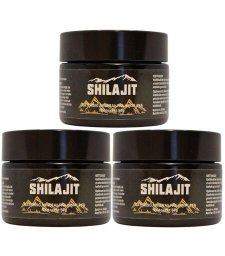 Endelig får du Shilajit Resin fra Himalaya– Naturens Egen EnergiboostKjøp 3-pack Shilajit Resin til kun 1.199,- Spar penger!Oppdag den rene kraften fra Himalaya med vår høykvalitets Shilajit Resin. Håndplukket fra uberørte fjellområder på over 5000 meters høyde, er vår Shilajit ekstra rik på essensielle mineraler og fulvinsyre. Denne unike naturlige harpiksen gir en naturlig energiboost, støtter immunforsvaret og bidrar til økt mental klarhet. Opplev en mer vital og balansert hverdag.Fordeler med Shilajit Resin Himalaya:- Ren Shilajit med god, nøytral smak- Hentet fra fjellkjeden Himalaya på over 5000 meters høyde- Kan bidra til mer energi i hverdagen og et sterkere immunsystem- Høyt innhold av essensielle mineraler- Hele 50 gram Shilajit per boksInnhold per boks50 gramAnbefalt dosering:1/2 teskje harpiks daglig. Kan spises direkte fra boksen eller blandes i varmt vann, kaffe eller andre foretrukne drikker.Næringsinnhold:InnholdPer servering (1 gram)Shilajit Resin (fra Himalaya i Gilgit-Baltistan i 16.000-18.000 fot høyde)500 mgAyurvedisk urteblanding (Ashwagandha-rot ekstrakt (med 5% withanolid), gurkemeierot ekstrakt, curculigo orchioides ekstrakt, tribulus terrestris ekstrakt)100 mgIngredienser: Shilajit Resin (fra Himalaya i Gilgit-Baltistan i 16.000-18.000 fot høyde), Ayurvedisk urteblanding (Ashwagandha-rot ekstrakt (med 5% withanolid), gurkemeierot ekstrakt, curculigo orchioides ekstrakt, tribulus terrestris ekstrakt).Skal kun brukes av voksne. Den anbefalte daglige dosen bør ikke overskrides. Oppbevares tørt, lukket og utilgjengelig for barn. Gravide eller ammende kvinner, barn under 18 år og personer med en kjent medisinsk tilstand bør konsultere lege før de benytter dette produktet. Kosttilskudd bør ikke brukes som en erstatning for et variert kosthold. ...