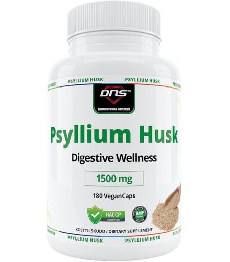 Psyllium Husk (psylliumfrø) med hele 180 kapsler per boks!Psyllium Husk fra DNS er et naturlig tilskudd som støtter både fordøyelsen og hjertehelsen. Psylliumfrø har vært brukt i århundrer som en skånsom og effektiv måte å rense tarmen på. Det høye innholdet av løselige fibre gjør produktet spesielt nyttig for å opprettholde sunne kolesterolnivåer og støtte et velfungerende hjerte- og karsystem.Kjøp 3-pack Psyllium Husk til kun 699,- Klikk her og spar penger! BESTILL 3-PACK HEREn av de viktigste fordelene med psylliumfrø er deres evne til å forbedre fordøyelsen. Ved å gi mer volum til avføringen, kan de bidra til å lindre forstoppelse og fremme regelmessige toalettbesøk. I tillegg har psyllium husk vist seg å kunne redusere nivået av LDL-kolesterol – det såkalte "dårlige" kolesterolet – noe som er positivt for hjertet.Mange brukere opplever også økt metthetsfølelse etter inntak, noe som kan være til hjelp ved vektkontroll. Psyllium kan dessuten lindre ubehag ved hemorroider ved å mykgjøre avføringen og gjøre den lettere å passere.Les mer om psyllium husks her.Fordeler med DNS Psyllium Husk:- Kan bidra til bedre fordøyelse- Opprettholder gode hjertefunksjoner- Hele 180 veganske kapslerInnhold per boks:180 kapslerAnbefalt dosering:En kapsel tre ganger om dagen sammen med 2-3 dl vann.Næringsinnhold:InnholdPer servering (3 kapsler)Psylliumfrøskall1500 mgIngredienser Psyllium Husk, antiklumpemiddel (silisiumdioksid) (E551), emulgator (magnesiumstearat) (E470b) Kapsel: gelatin (storfe)Skal kun brukes av voksne. Rådfør deg med helsepersonell før bruk dersom du er gravid eller ammer, har en medisinsk tilstand eller bruker medisiner, spesielt blodfortynnende medisiner. Oppbevares utilgjengelig for barn. Dette produktet bør tas med minst 2,5 dl væske. Inntak av dette produktet uten nok væske kan føre til kvelning. Ikke ta dette produktet hvis du har problemer med å svelge. Kosttilskudd bør ikke brukes som en erstatning for et variert kosthold. Anbefalt dosering bør ikke overskrides. ...