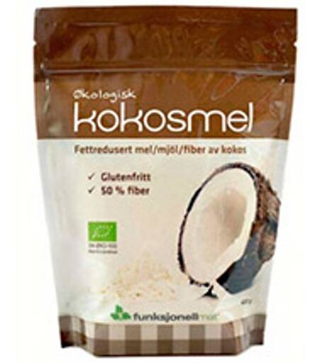 Kokosmel er laget av økologisk kokos som er tørket, fettredusert og finmalt. Det er et glutenfritt mel som er ekstremt rikt på fiber og fattig på karbohydrater. Næringsinnhold per 100 g:Energi: 1481 kJ/354 kcalFett: 14 g-hvorav mettet: 13 gKarbohydrat: 18 g-hvorav sukkerarter: 18 gKostfiber: 40 gProtein: 19 gSalt: 0 gVerdiene er et gjennomsnitt og kan variere Innhold :400 gr ...