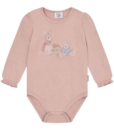 Hust and Claire Britt Cute Rabbit bodySkjønn body til jente i myk økologisk bomull. Bodyen har print av søte kaniner med 3D detaljer og myk strikk rundt mansjettene.Materiale: 95% økologisk bomull, 5% elastan ...
