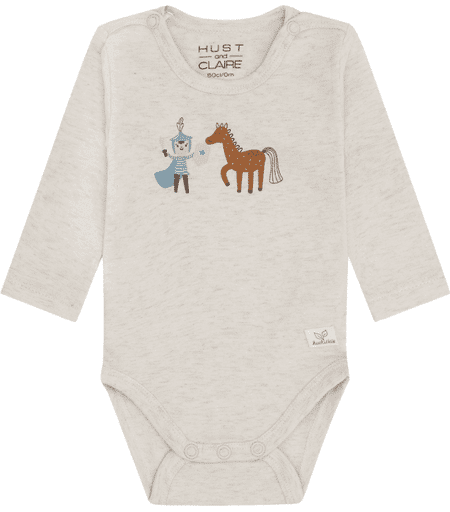 Hust and Claire Bebe Fairy Tale bodySøt body til små gutter i myk økologisk bomull. Bodyen har print av en ridder og hesten hans foran.Materiale: 95% økologisk bomull, 5% elastan ...