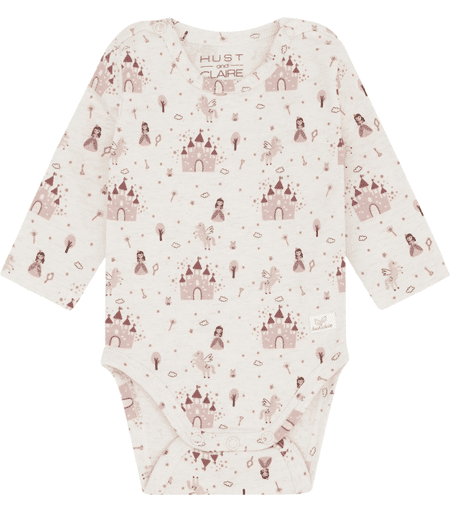 Hust and Claire Bebe Fairy Tale bodySøt body til små jenter i myk økologisk bomull. Bodyen har print av en prinsesse, enhjørningen hennes og slott over hele.Materiale: 95% økologisk bomull, 5% elastan ...